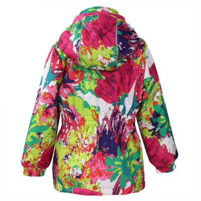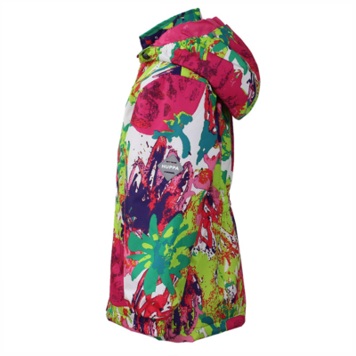 Children´s waterproof and windproof jacket. Breathable outer fabric. Rubber band incorporated in the sleeve ends, hood edge, and back waist. The removable hood attaches to the collar with press studs. Reflective details on the front and back.