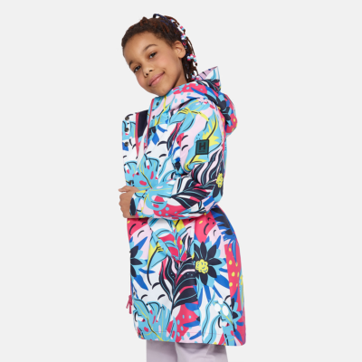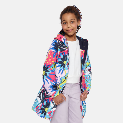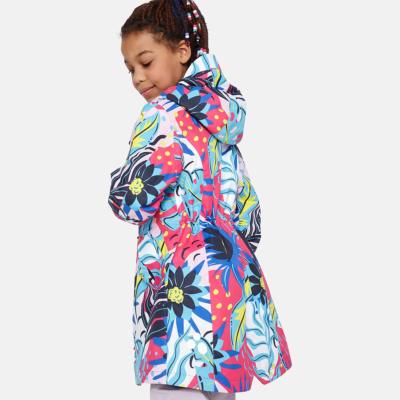 Insulated (40 g) water- and windproof parka for girls, suitable for spring and autumn. The top layer of the parka is made of a breathable material. It has an adjustable hood and sleeve ends, as well as an adjustable waist with stoppers. It has waterproof, taped seams and is decorated with reflective details.