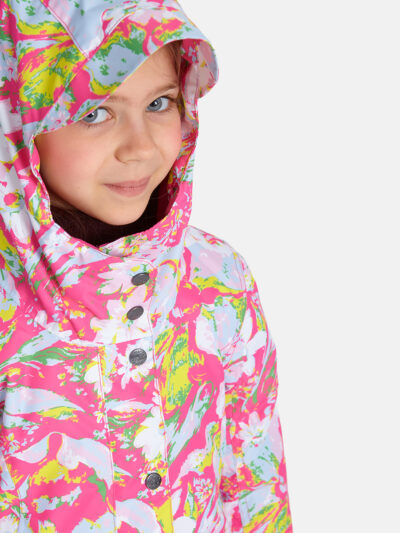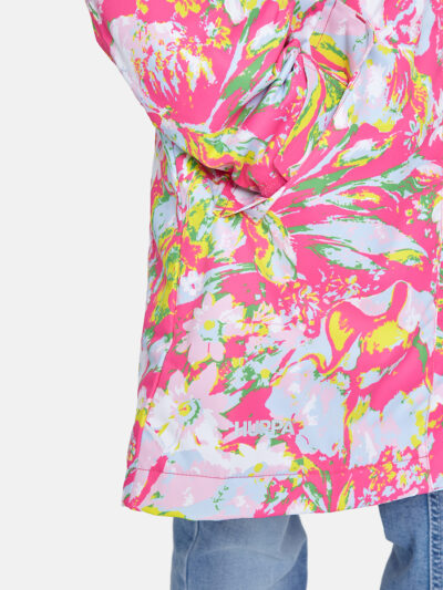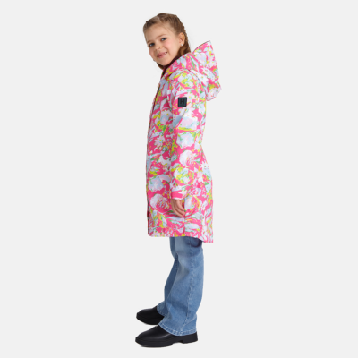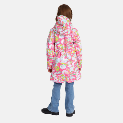 Insulated (40 g) water- and windproof parka for girls, suitable for spring and autumn. The top layer of the parka is made of a breathable material. It has an adjustable hood and sleeve ends, as well as an adjustable waist with stoppers. It has waterproof, taped seams and is decorated with reflective details.