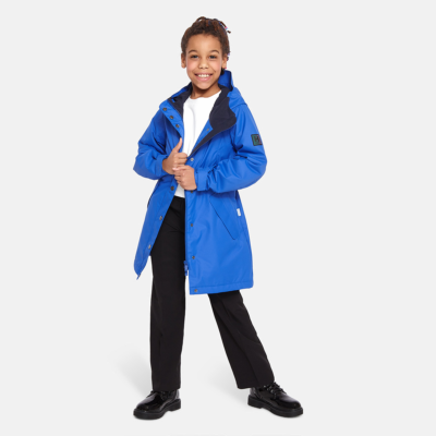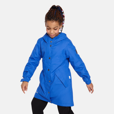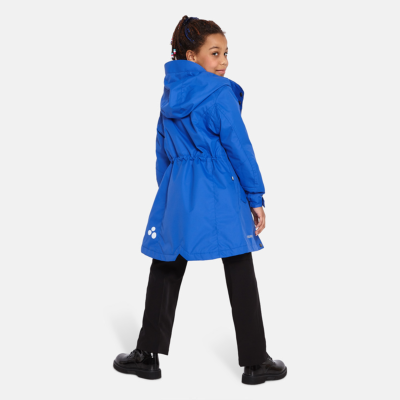 Insulated (40 g) water- and windproof parka for girls, suitable for spring and autumn. The top layer of the parka is made of a breathable material. It has an adjustable hood and sleeve ends, as well as an adjustable waist with stoppers. It has waterproof, taped seams and is decorated with reflective details.
