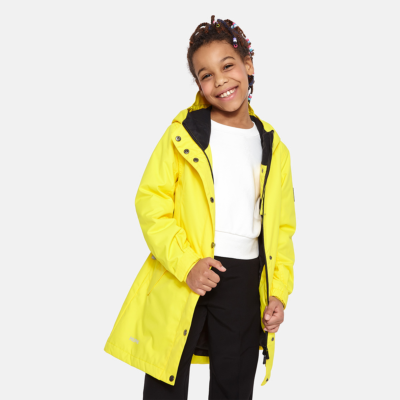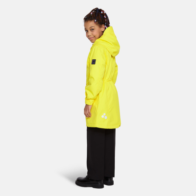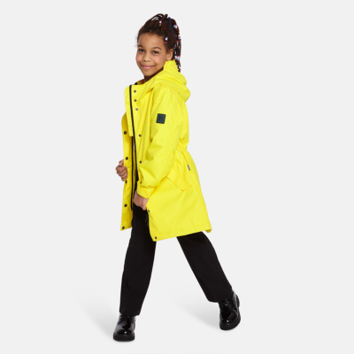 Insulated (40 g) water- and windproof parka for girls, suitable for spring and autumn. The top layer of the parka is made of a breathable material. It has an adjustable hood and sleeve ends, as well as an adjustable waist with stoppers. It has waterproof, taped seams and is decorated with reflective details.