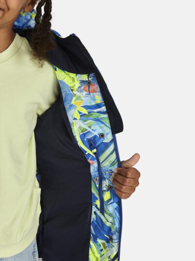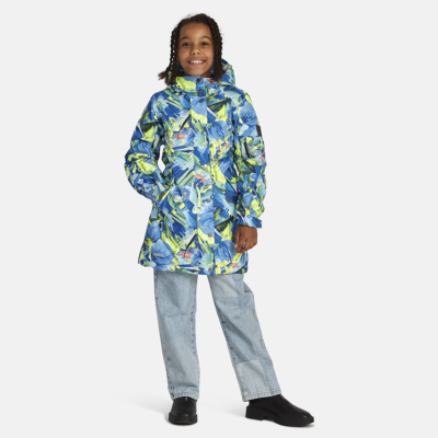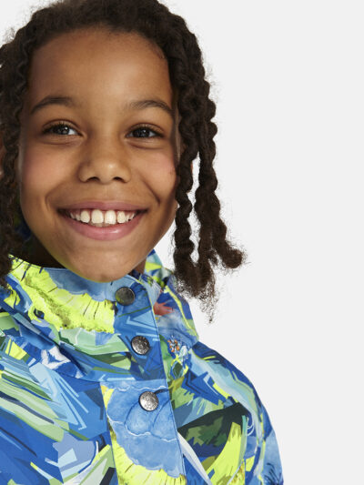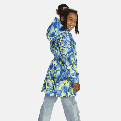 Children’s waterproof and windproof between-seasons parka Breathable fabric Adjustable hood and sleeve ends Drawstring tunnel with stoppers on waist Waterproof taped seams Reflective elements on fabric