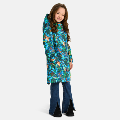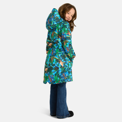 Children’s waterproof and windproof between-seasons parka. Breathable fabric. Adjustable hood and sleeve ends. Drawstring tunnel with stoppers on waist. Waterproof taped seams. Reflective elements on fabric.