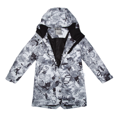 Insulated (40 g) water- and windproof parka for girls, suitable for spring and autumn. The top layer of the parka is made of a breathable material. It has an adjustable hood and sleeve ends, as well as an adjustable waist with stoppers. It has waterproof, taped seams and is decorated with reflective details.
