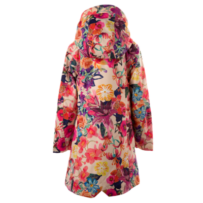 Insulated (40 g) water- and windproof parka for girls, suitable for spring and autumn. The top layer of the parka is made of a breathable material. It has an adjustable hood and sleeve ends, as well as an adjustable waist with stoppers. It has waterproof, taped seams and is decorated with reflective details.