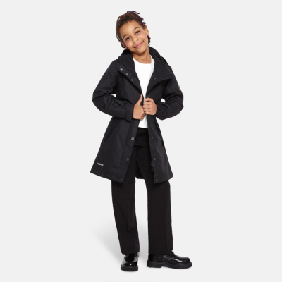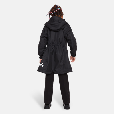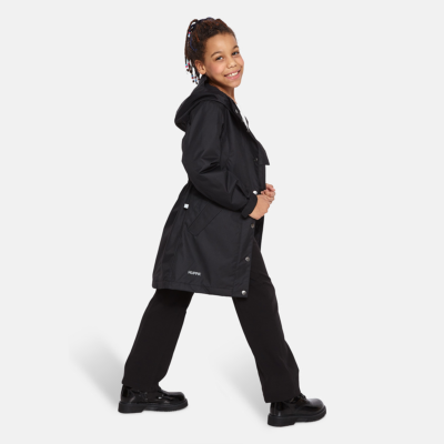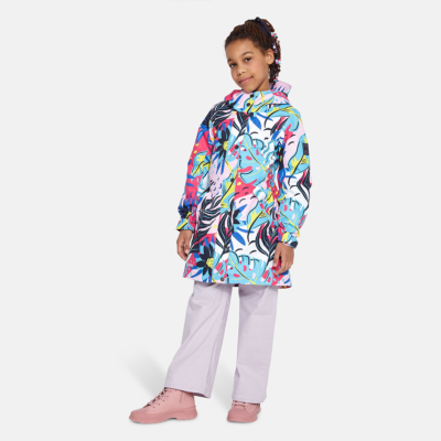 Insulated (40 g) water- and windproof parka for girls, suitable for spring and autumn. The top layer of the parka is made of a breathable material. It has an adjustable hood and sleeve ends, as well as an adjustable waist with stoppers. It has waterproof, taped seams and is decorated with reflective details.