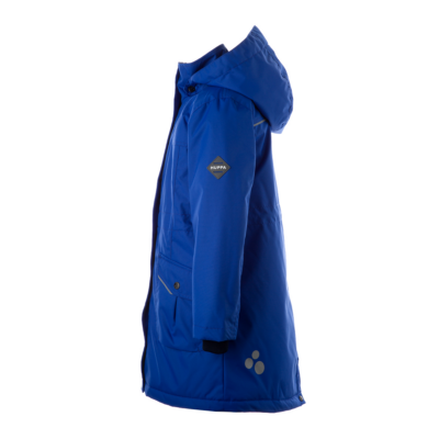 Bērnu ūdens- un vēja izturīgs pavasara-rudens mētelis. Elpojošs virsaudums. Mēteļa iekšpusē mīksts oderaudums. Noņemamā kapuce pie apkakles nostiprināma ar spiedpogām. Piedurkņu galos valnīša aproce. Priekšējā aizdarē ar spiedpogu joslu pārklāts rāvējslēdzējs. Jostasvietā gumijas auklas tunelis ar atdurēm. Mētelim ir ūdensizturīgi stepētas plecu šuves. Virsaudumam atstarojošas detaļas.