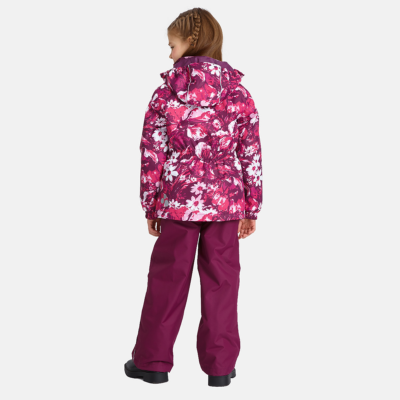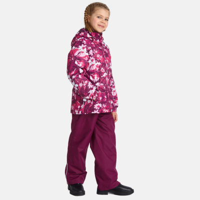 Children´s transition season jacket and pants set. Water- and windproof, breathable outer fabric. The inside of the jacket and trousers is made of soft lining fabric. Rubber band incorporated in the sleeve ends, hood edge, and back waist. The removable hood attaches to the collar with press studs. The trousers have a higher waist and adjustable elastic braces. incorporated rubber waistband. Rubber band tunnel with stoppers at the ends of the legs. Waterproof taped seat seam. The pants have no inseam on the leg. Both jackets and trousers have reflective details.