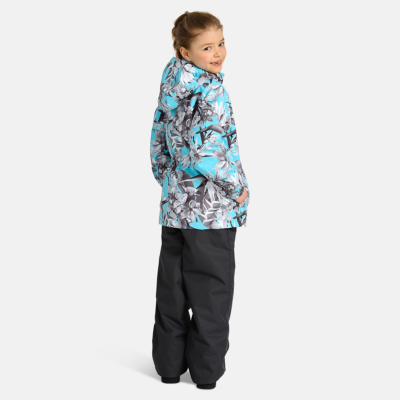 Children´s transition season jacket and pants set. Water- and windproof, breathable outer fabric. The inside of the jacket and trousers is made of soft lining fabric. Rubber band incorporated in the sleeve ends, hood edge, and back waist. The removable hood attaches to the collar with press studs. The trousers have a higher waist and adjustable elastic braces. incorporated rubber waistband. Rubber band tunnel with stoppers at the ends of the legs. Waterproof taped seat seam. The pants have no inseam on the leg. Both jackets and trousers have reflective details.