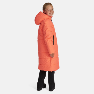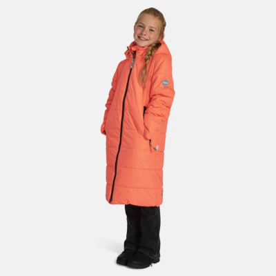 Insulated (300 g) water- and windproof between-seasons coat for girls. The top layer of the coat is breathable as well as water- and windproof. It has ribbed sleeve cuffs. The coat has a two-way zipper at the front and pockets with zippers. It is decorated with reflective details.