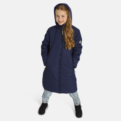Insulated (300 g) water- and windproof between-seasons coat for girls. The top layer of the coat is breathable as well as water- and windproof. It has ribbed sleeve cuffs. The coat has a two-way zipper at the front and pockets with zippers. It is decorated with reflective details.