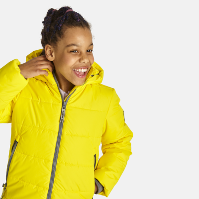 Insulated (300 g) water- and windproof between-seasons coat for girls. The top layer of the coat is breathable as well as water- and windproof. It has ribbed sleeve cuffs. The coat has a two-way zipper at the front and pockets with zippers. It is decorated with reflective details.
