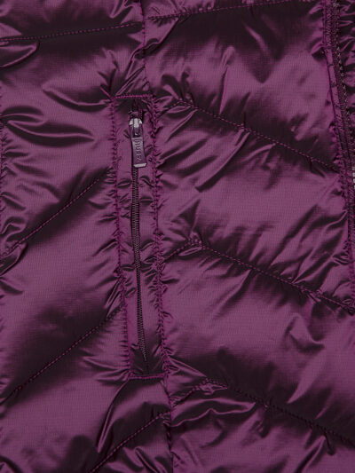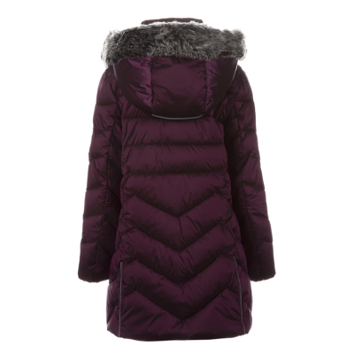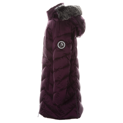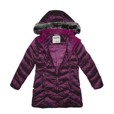 Children’s waterproof and windproof quilted winter coat. Breathable fabric. Soft lining on the inside. Removable snap-on hood. The coat is filled with innovative recycled material imitating the properties of feather fill. The material is warm, dries quickly and does not clump after washing. A great to natural feather fill. Removable faux fur trim on hood. Two zippered pockets at front for gloves or other necessities. Reflective elements on fabric.