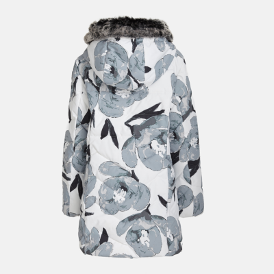 Bērnu ūdens un vēja necaurlaidīgas apdares ziemas mētelis. Gaisu caurlaidīgs virsējais audums. Mīksta mēteļa odere. Noņemamā kapuce pie apkakles stiprināma ar velkro aizdari. Mēteļa pildījumā inovatīvs, pārstrādāts materiāls, kas imitē dūnu spalvu pildījumu. Materiāls ir silts, ātri žūstošs un mazgājot nesaveļas. Lieliska alternatīva dabīgajam dūnu pildījumam. Kapucei noņemama mākslīgās kažokādas mala. Priekšpusi daiļo divas aizdarāmas kabatas, kur var ielikt cimdus vai citu nepieciešamo. Auduma virspusē atstarojošas detaļas.