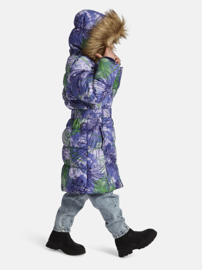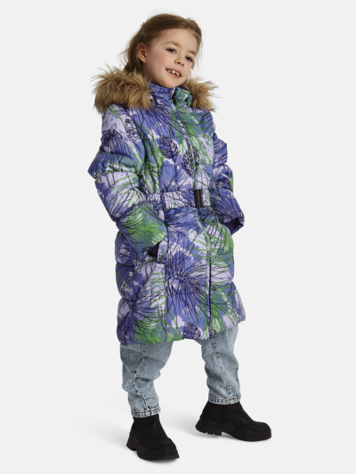 Children’s waterproof and windproof winter coat Breathable fabric Soft lining on the inside Removable snap-on hood Ribbed cuffs at sleeve ends Two-way zipper at front Faux fur trim on hood Reflective elements on fabric