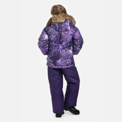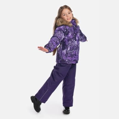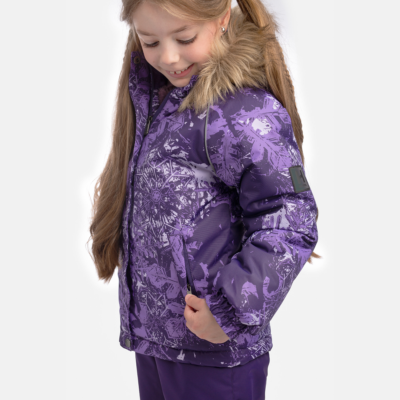 Girls’ 300g insulated winter jacket. The jacket has a soft flannel lining, and the outer fabric is both windproof and waterproof. Ribbed inner cuffs in the sleeves keep the child warm and dry even during active play. Reflective details added to the jacket ensure safety in the dark. The detachable hood with faux fur is safe for outdoor play, as it is attached with snap buttons to prevent snagging.