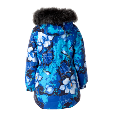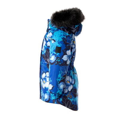 Children’s waterproof and windproof jacket. Breathable fabric. Soft mesh lining on the inside. Removable snap-on hood. Integrated elastic band at sleeve ends and on the waist. Zipper fastening Integrated zipper pockets at front. Removable faux fur trim on hood. Reflective elements on fabric.