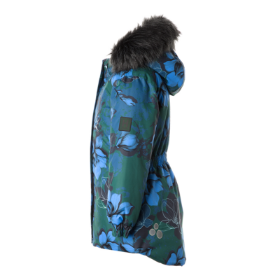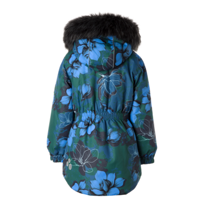 Children’s waterproof and windproof jacket. Breathable fabric. Soft mesh lining on the inside. Removable snap-on hood. Integrated elastic band at sleeve ends and on the waist. Zipper fastening Integrated zipper pockets at front. Removable faux fur trim on hood. Reflective elements on fabric.