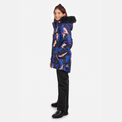 Children’s waterproof and windproof jacket. Breathable fabric. Soft mesh lining on the inside. Removable snap-on hood. Integrated elastic band at sleeve ends and on the waist. Zipper fastening. Integrated zipper pockets at front. Removable faux fur trim on hood. Reflective elements on fabric.
