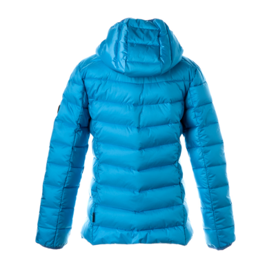 Children’s quilted jacket. Windproof slightly glossy top fabric. The jacket is filled with innovative recycled material imitating the properties of feather fill. The material is warm, dries quickly and does not clump after washing. A great alternative to natural feather fill.