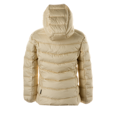 Children’s quilted jacket. Windproof slightly glossy top fabric. The jacket is filled with innovative recycled material imitating the properties of feather fill. The material is warm, dries quickly and does not clump after washing. A great alternative to natural feather fill.