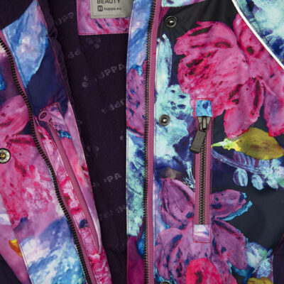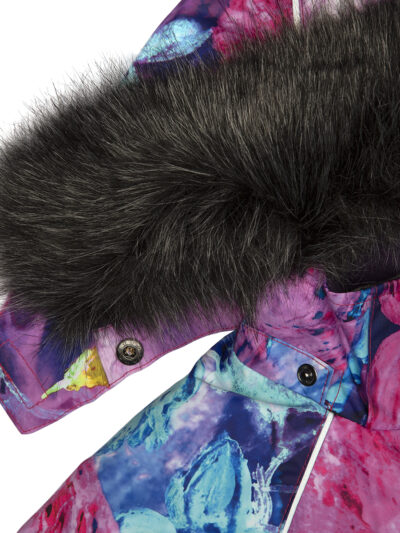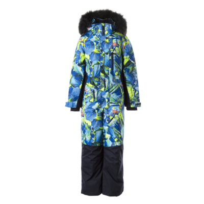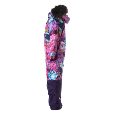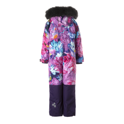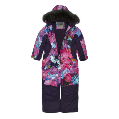 Children’s waterproof and windproof overall Breathable fabric Soft lining fabric on the inside Removable snap-on hood Integrated adjustable elastic band around the hood and on the back Ribbed cuffs at sleeve ends Adjustable sleeve ends Lapped zipper at front Integrated zipper pockets at front Buttonhole-adjustable waist Snow gaiters at leg ends Drawstring tunnel with stoppers at leg ends Waterproof taped seams Removable faux fur trim on hood Reflective elements on fabric