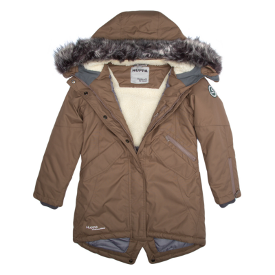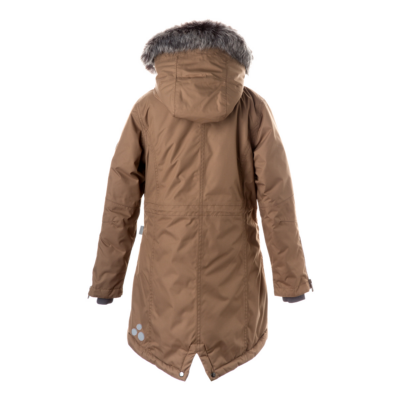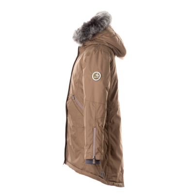 Children’s waterproof and windproof winter parka. Breathable fabric. Soft fabric on the inside. Faux sheepskin lining at the top of the back and inside the hood. Adjustable hood. Ribbed cuffs at sleeve ends. Two-way zipper covered with stud-press flap at front. Magnetic fastening on flap pockets. Drawstring tunnel with stoppers on waist. Waterproof taped seams. Removable faux fur trim on hood. Reflective elements on fabric.