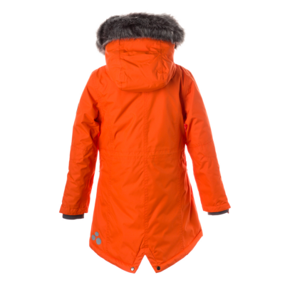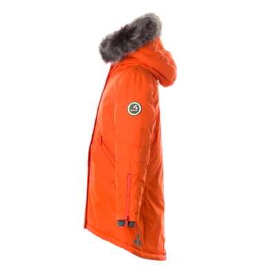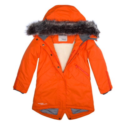 Children’s waterproof and windproof winter parka. Breathable fabric. Soft fabric on the inside. Faux sheepskin lining at the top of the back and inside the hood. Adjustable hood. Ribbed cuffs at sleeve ends. Two-way zipper covered with stud-press flap at front. Magnetic fastening on flap pockets. Drawstring tunnel with stoppers on waist. Waterproof taped seams. Removable faux fur trim on hood. Reflective elements on fabric.