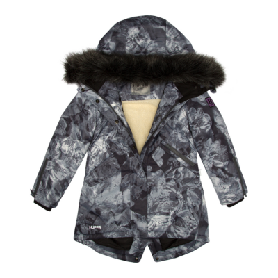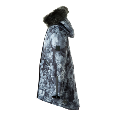 Children’s waterproof and windproof winter parka. Breathable fabric. Soft fabric on the inside. Faux sheepskin lining at the top of the back and inside the hood. Adjustable hood. Ribbed cuffs at sleeve ends. Two-way zipper covered with stud-press flap at front. Magnetic fastening on flap pockets. Drawstring tunnel with stoppers on waist. Waterproof taped seams. Removable faux fur trim on hood. Reflective elements on fabric.