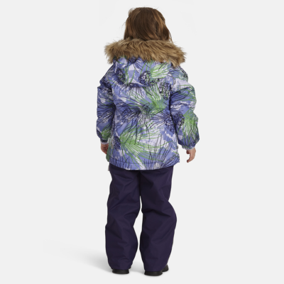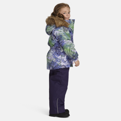 Children’s jacket and pants set. Waterproof and windproof, breathable top fabric. Soft mesh lining on the inside of the jacket and pants. Integrated elastic band at sleeve ends and on the waist. Removable snap-on hood Faux fur trim on hood. The bib pants have elastic adjustable braces. Integrated elastic band on waist. Drawstring tunnel with stoppers at leg ends. Waterproof taped seams. The pants have no inner leg seam. Reflective elements on both jacket and pants.