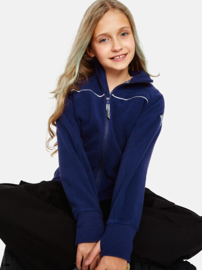 Soft fleece children’s jacket. Ribbed cuffs with thumb holes at sleeve ends. Zipper fastening. The jacket is great for wearing on its own or in colder weather as an additional layer under outer garments. Reflective elements at front and on shoulder.