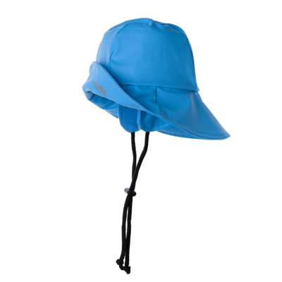 Kids´ water- and windproof rain hat. The inner lining of the hat and the earcovers are made of fleece. The hat has adjustable straps with stoppers. Welded seams help to keep the hat dry. It is decorated with reflective details.