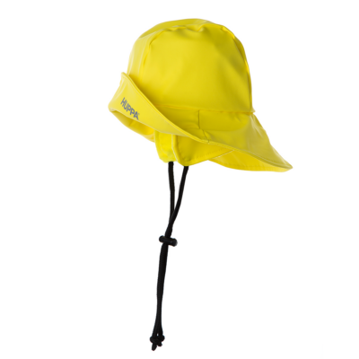 Kids´ water- and windproof rain hat. The inner lining of the hat and the earcovers are made of fleece. The hat has adjustable straps with stoppers. Welded seams help to keep the hat dry. It is decorated with reflective details.