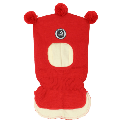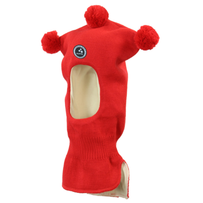 Classic children´s scarf hat with three tassels. The hat has a cotton jersey lining and a top made of 50% merino wool, 50% acrylic yarn. The scarf hat is ideal for wearing in cold winter weather, as it protects the child´s neck and ears from the cold wind.