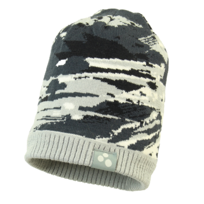 Children’s merino wool knit hat. Cotton jersey on the inside. Reflective Huppa logo.