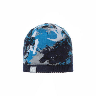 Children’s merino wool knit hat. Cotton jersey on the inside. Reflective Huppa logo.