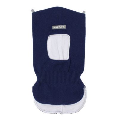 Children´s scarf hat knitted from cotton blend yarn. The inside of the hat is made of cotton knitted fabric. Reflective details on the hat.