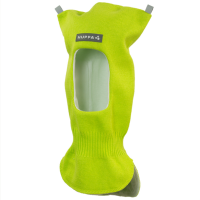 Children´s scarf hat knitted from cotton blend yarn. The inside of the hat is made of cotton knitted fabric. Reflective details on the hat.