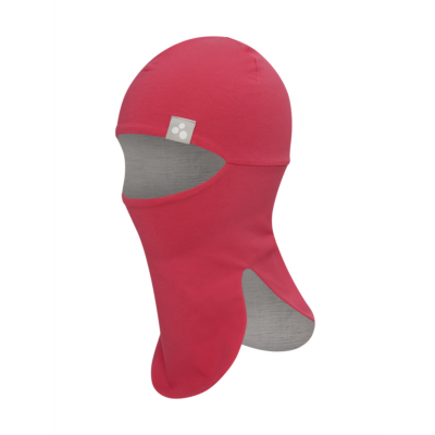 Kids’ soft cotton blend jersey scarfhat. The inner lining of the scarfhat is made of merino wool. It also has a reflective Huppa logo on it.