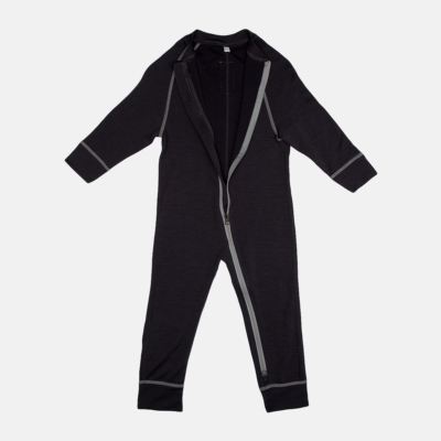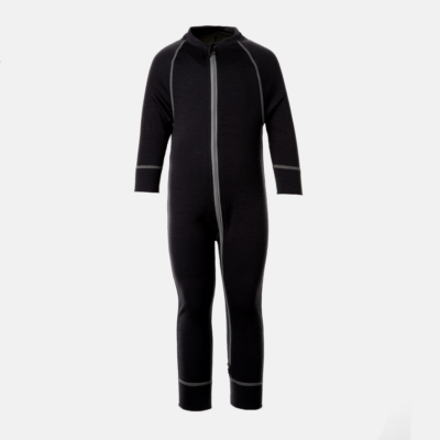 Children’s merino wool and bamboo snowsuit for toddlers. Soft merino wool outer layer. Skin-friendly bamboo on the inside. The material absorbs moisture and warms or cools in response to body temperature. Suitable for sensitive skin.