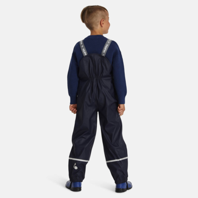 Children´s windproof rain bib pants. Adjustable elastic braces. Silicone foot straps. Waterproof taped seams help keep the pants dry. Reflective elements on fabric.