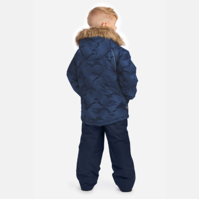 Children’s jacket and pants set. Waterproof, windproof and breathable fabric. Soft lining on the inside of the jacket and pants. Integrated elastic band at sleeve ends and on the waist. Removable snap-on hood. Faux fur trim on hood. The bib-pants have elastic adjustable suspenders. Integrated elastic band on waist. Drawstring tunnel with stoppers at leg ends. Waterproof taped seams. The pants have no inner leg seam. Reflective details on both jacket and pants.