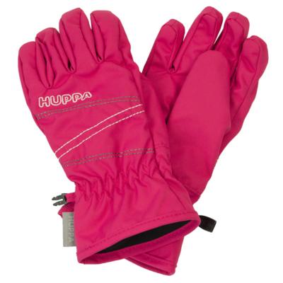 Waterproof and windproof gloves for adults. Breathable outer fabric. Comfortable incorporated rubber band on the wrist. The inside of the mittens is made of soft fleece fabric. A small clip helps keep the pair of gloves together. Huppa reflective logo on the outer fabric.