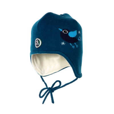 Children’s soft yarn knit hat with 40g of insulation. Cotton jersey on the inside. Reflective Huppa logo