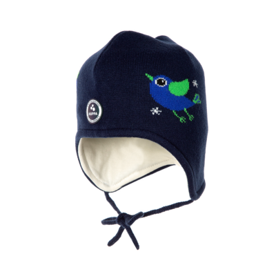 Children’s soft yarn knit hat with 40g of insulation. Cotton jersey on the inside. Reflective Huppa logo