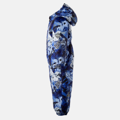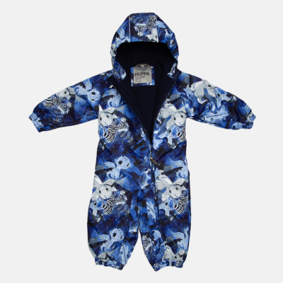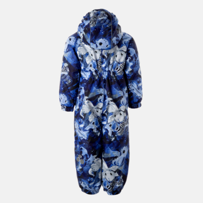 Insulated (40 g) water- and windproof overall for babies, suitable for spring and autumn. The top layer of the overall is made of a breathable material. The overall has flannel lining, sewn-in elastic bands on the sleeves, leg ends and hood. Overalls in sizes 62-80 have retractable hand and leg coverings. The overall has taped seams. The set includes elastic foot straps. It is decorated with reflective details.