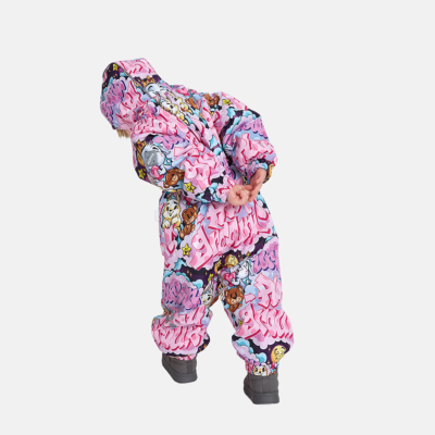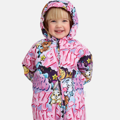 Insulated (40 g) water- and windproof overall for babies, suitable for spring and autumn. The top layer of the overall is made of a breathable material. The overall has flannel lining, sewn-in elastic bands on the sleeves, leg ends and hood. Overalls in sizes 62-80 have retractable hand and leg coverings. The overall has taped seams. The set includes elastic foot straps. It is decorated with reflective details.