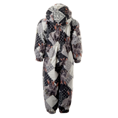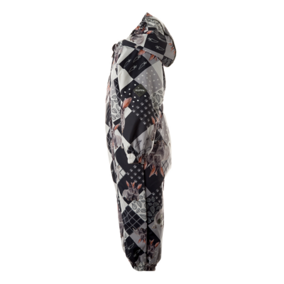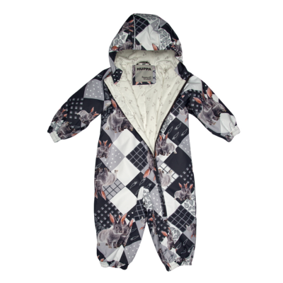 Insulated (40 g) water- and windproof overall for babies, suitable for spring and autumn. The top layer of the overall is made of a breathable material. The overall has flannel lining, sewn-in elastic bands on the sleeves, leg ends and hood. Overalls in sizes 62-80 have retractable hand and leg coverings. The overall has taped seams. The set includes elastic foot straps. It is decorated with reflective details.