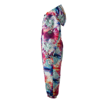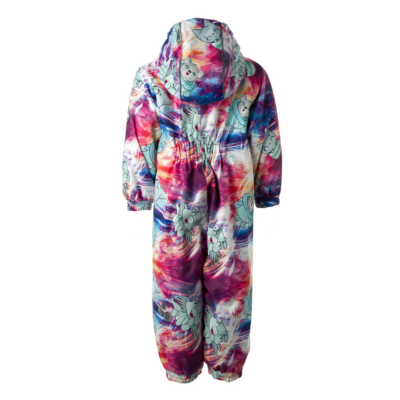 Insulated (40 g) water- and windproof overall for babies, suitable for spring and autumn. The top layer of the overall is made of a breathable material. The overall has flannel lining, sewn-in elastic bands on the sleeves, leg ends and hood. Overalls in sizes 62-80 have retractable hand and leg coverings. The overall has taped seams. The set includes elastic foot straps. It is decorated with reflective details.