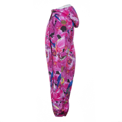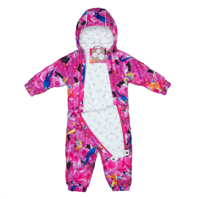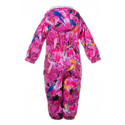 Children´s waterproof and windproof spring-autumn overalls. Breathable outer fabric. The inside of the overalls is made of flannel lining fabric. Rubber band incorporated at the ends of the sleeves and legs and at the edge of the hood. The removable hood attaches to the collar with press studs. Comfortably reversible sleeve and leg ends. Rubber band incorporated in the waste on the back. Waterproof taped seams. The overalls have no inseam on the leg. Removable rubber soles. Reflective details on the outer fabric.